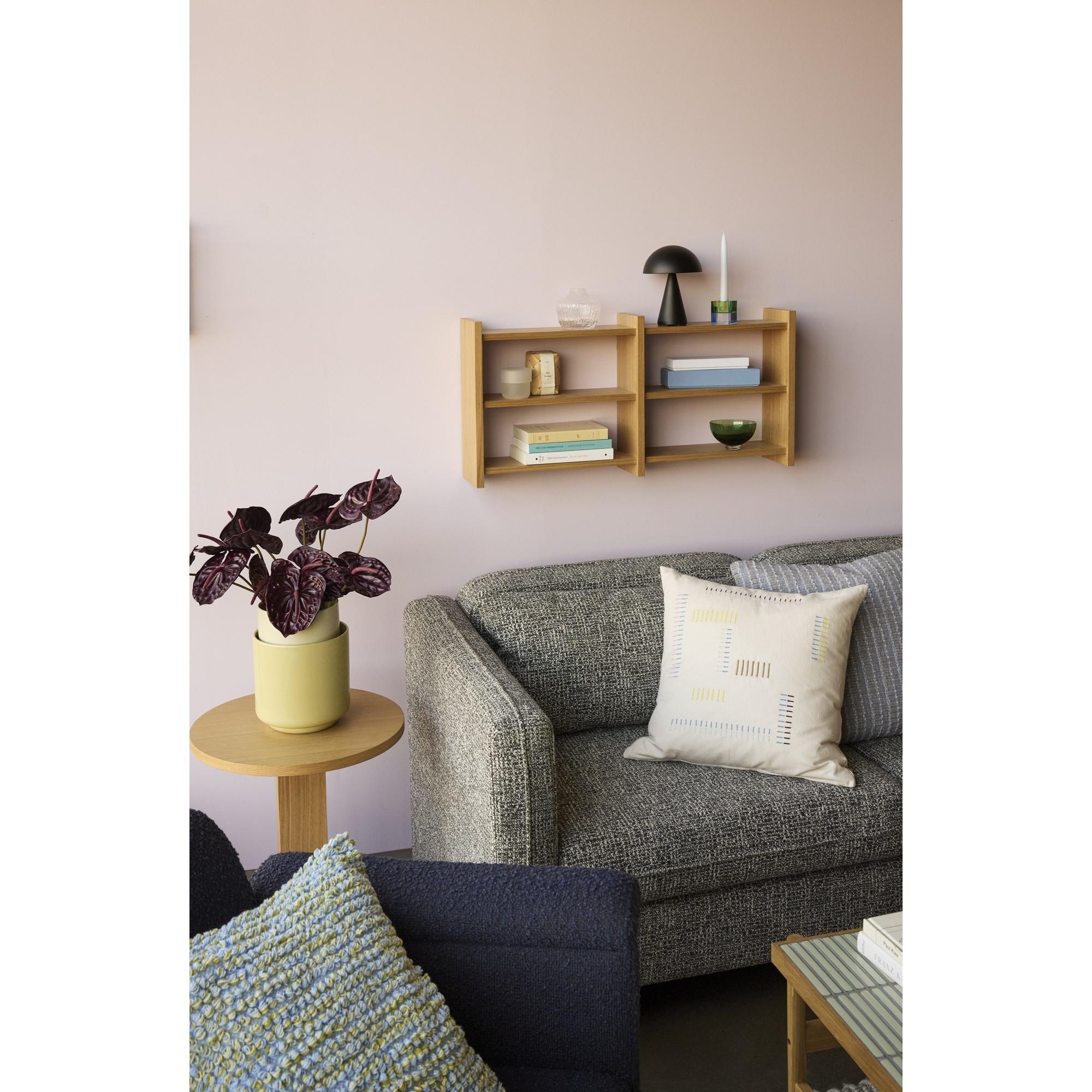La estantería Kant de Hübsch es una solución de almacenamiento funcional y elegante con un diseño sencillo y moderno. Ofrece espacio para libros, adornos y objetos personales, y además funciona como elemento decorativo. Su diseño ligero la hace ideal para el salón, el despacho o el dormitorio, contribuyendo así a una decoración interior organizada y armoniosa.