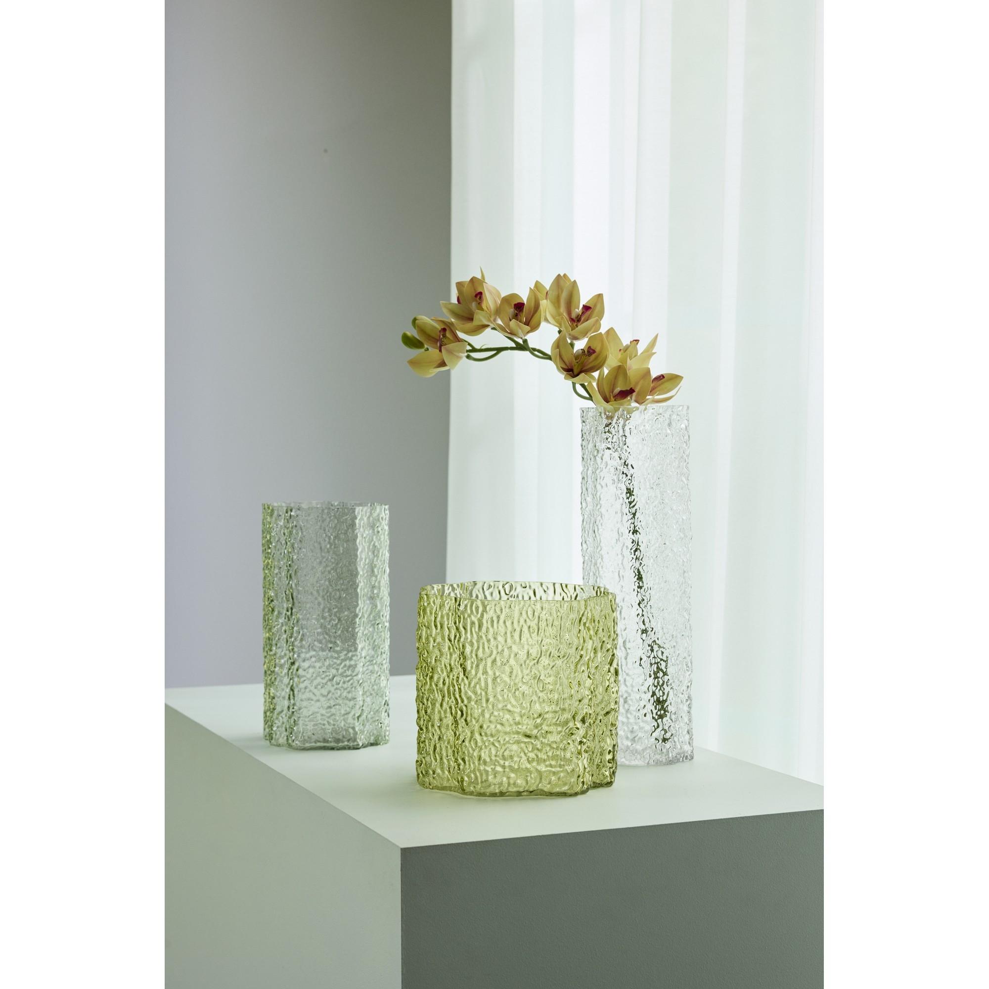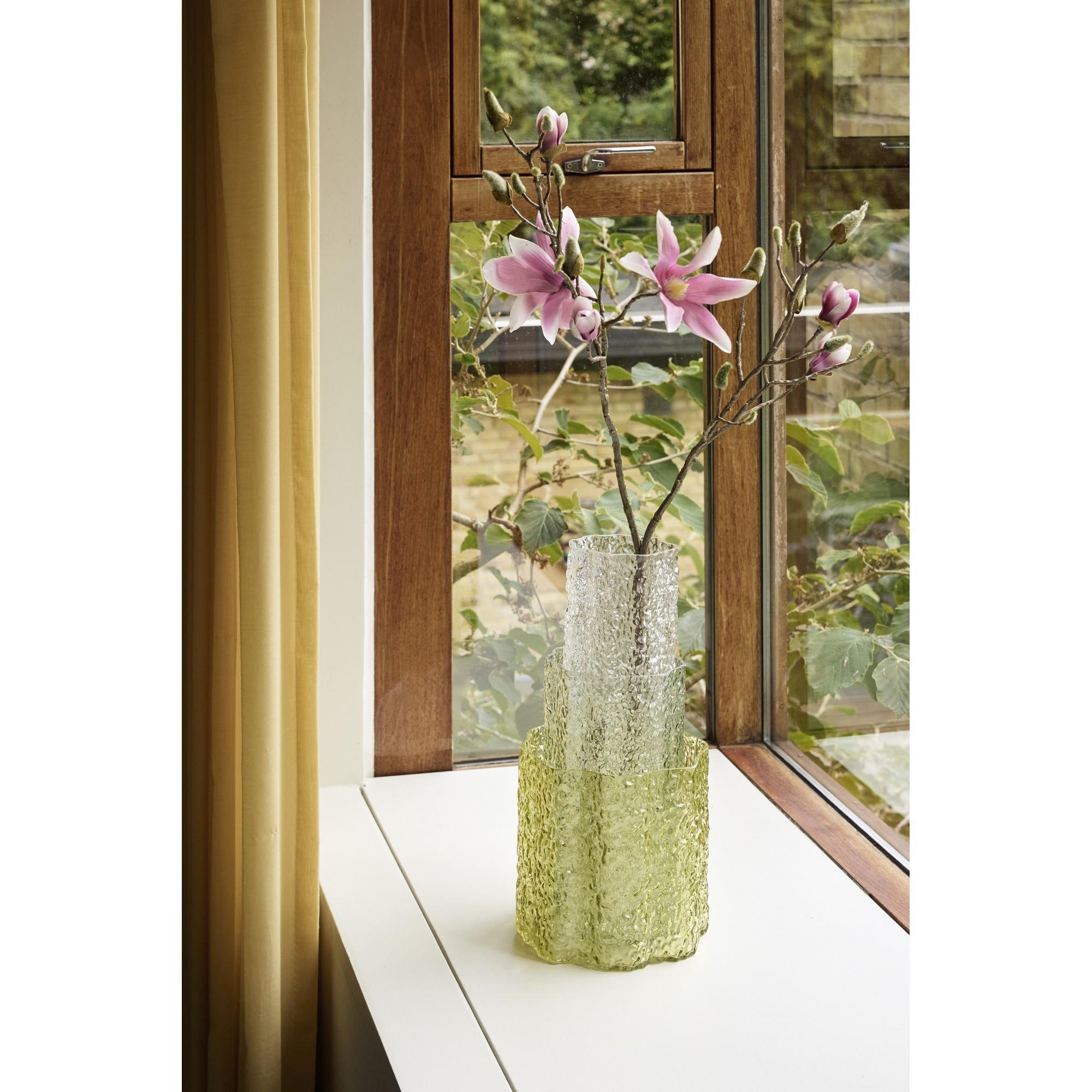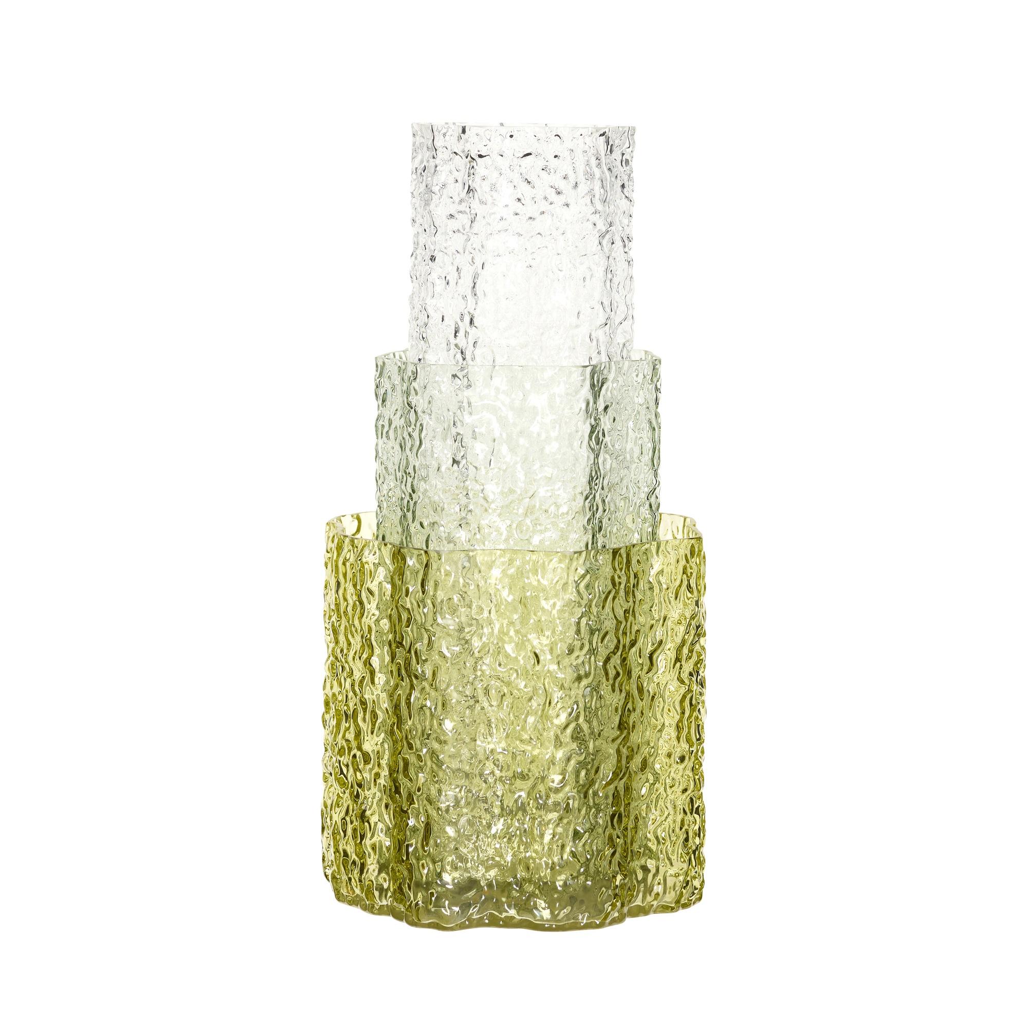 El jarrón triple de Hübsch se compone de un conjunto decorativo de tres jarrones que, en conjunto, crean una atmósfera vibrante y armoniosa en el interior. Sus diferentes formas permiten una disposición dinámica, pudiendo colocarse juntos o distribuidos por el hogar. Quedan preciosos con flores y ramas, pero también pueden lucir solos como elementos decorativos en una estantería, aparador o mesa auxiliar.