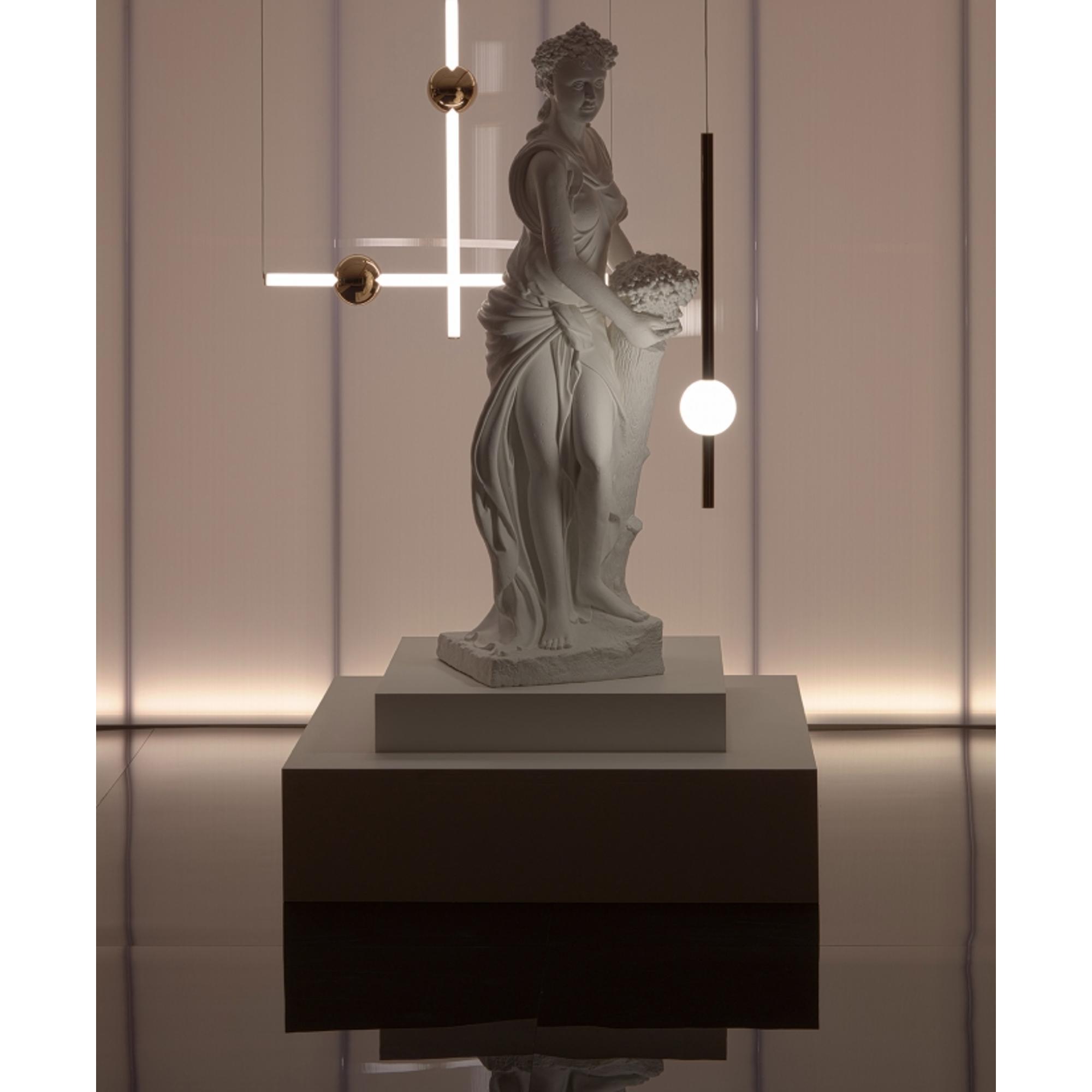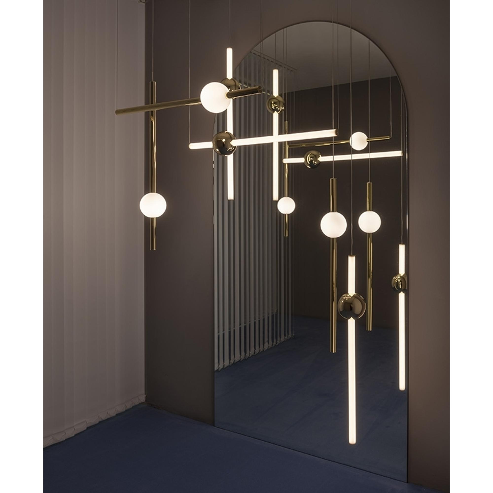 La lámpara colgante Orion Tube de Lee Broom combina precisión escultural con una simplicidad poética. Consiste en un cilindro alargado de color blanco opalino, interrumpido por detalles pulidos, que crea un elegante contraste entre luz y estructura. Su diseño ofrece una expresión serena y fluida, donde la luz se integra en la propia forma. Orion Tube puede colgarse sola, creando un toque de estilo, o combinarse con otras lámparas de la serie para crear instalaciones dinámicas y gráficas con líneas verticales y horizontales. Con su geometría precisa y su sofisticada expresión lumínica, la lámpara colgante representa la capacidad de Lee Broom para aunar funcionalidad y estética en un lenguaje moderno y artístico que aporta profundidad y carácter a la estancia.