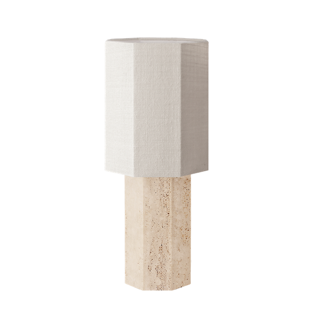 Lámpara de Mesa Louise Roe Eight Over Eight, Grande , Travertino/yute, Blanco
