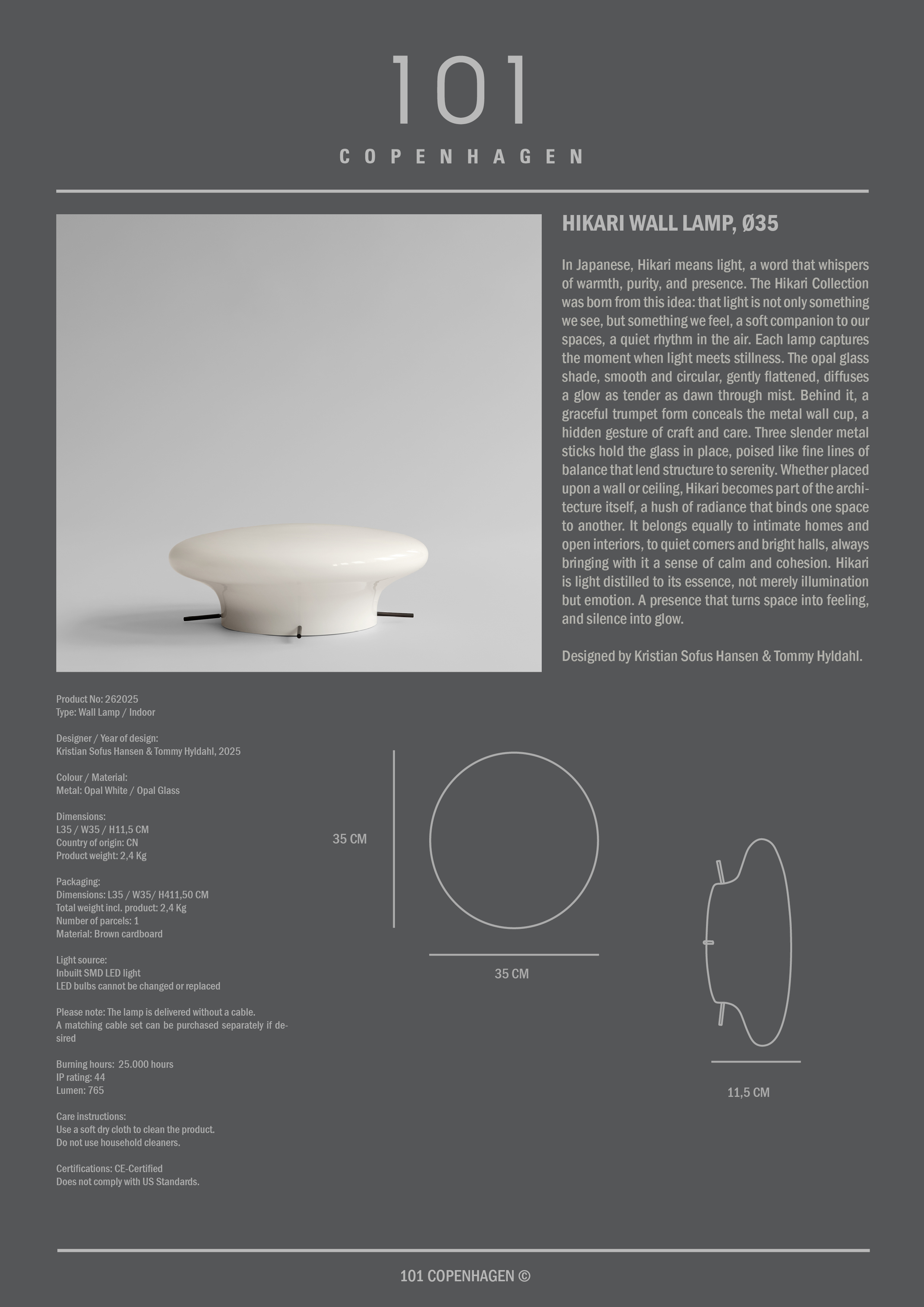 Lámpara de Pared 101 Copenhagen Hikari Ø35 Blanco Ópalo 499 € Igualamos el precio en directo Listo para entrega en 30–40 días Añadir a la cestaConoce más información del producto Envío gratuito en pedidos superiores a 150 € Excluye muebles grandes y otros productos seleccionados Derecho de devolución de 365 días Distribuidor autorizado