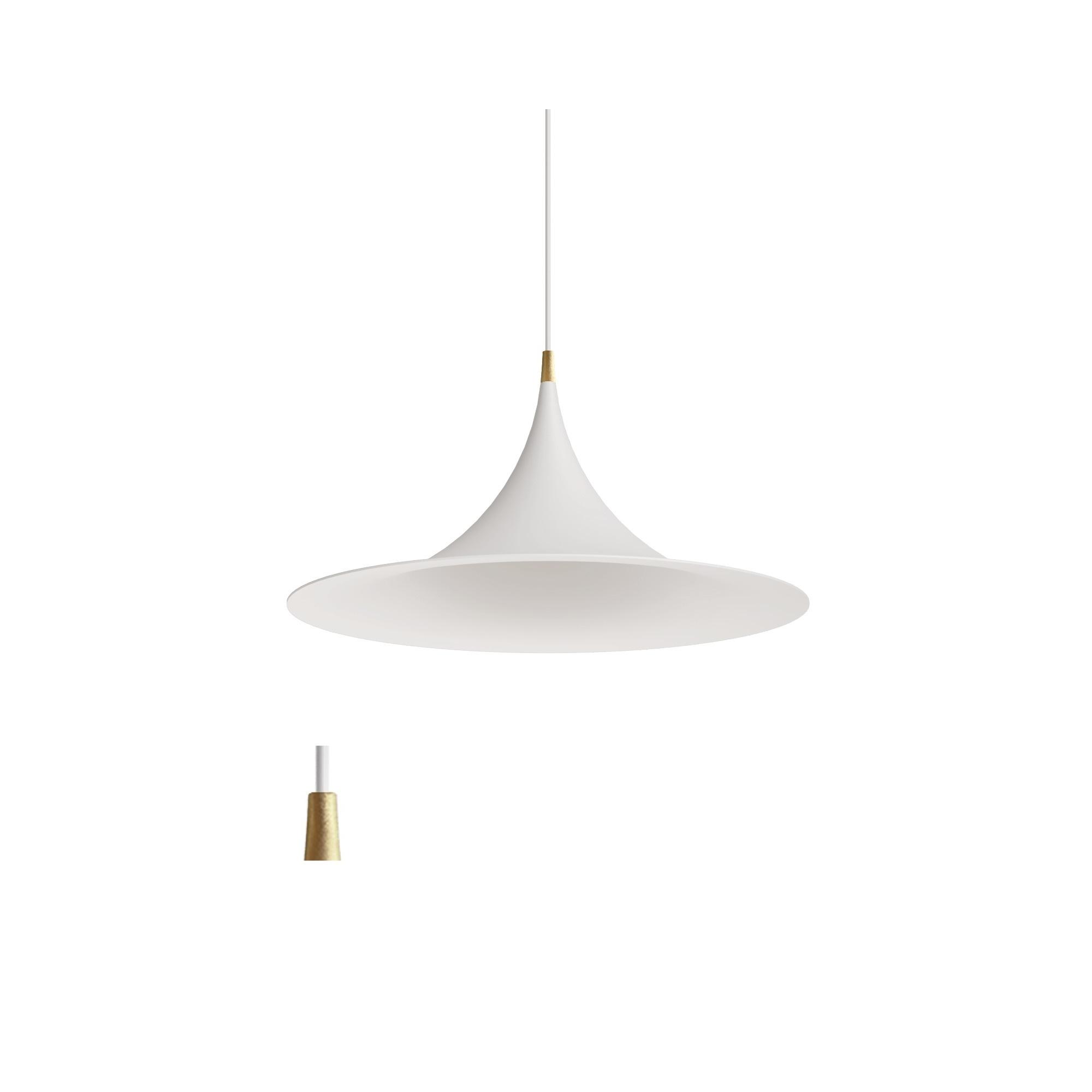 Morgana es una lámpara colgante de aspecto elegante y versátil, caracterizada por sus líneas suaves y finos detalles. Está fabricada en metal pintado rizado y disponible en varios colores tenues, combinados con refinados detalles en oro pulido o níquel, que le aportan un toque exclusivo. El florón es del mismo color que la lámpara, mientras que el cable negro o blanco a juego completa el conjunto. Morgana crea una iluminación agradable y atmosférica, ideal tanto para hogares como para entornos profesionales.