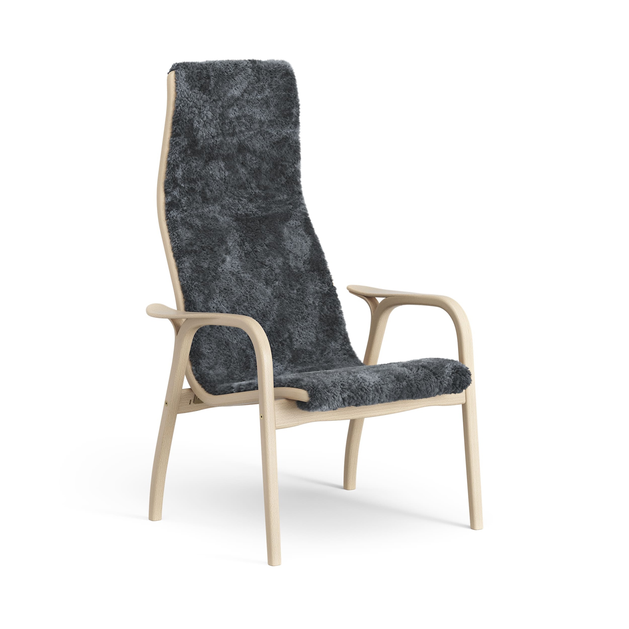 Sillón Alto Lacado Lamino de Suecia en Haya/carbón/piel de Oveja