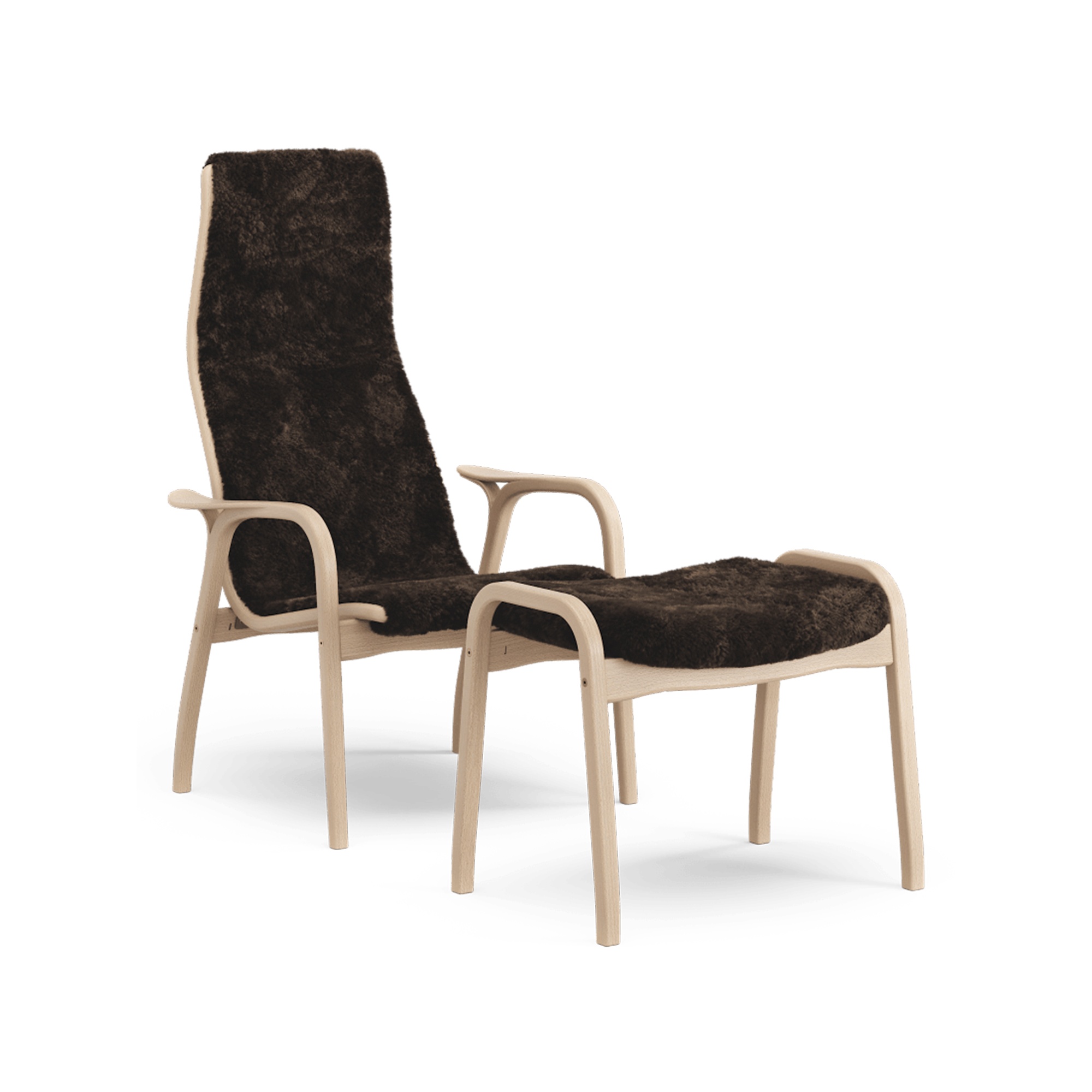 Sillón Lamino Sueco con Reposapiés Alto de Haya Lacada en Roble/espresso/piel de Oveja