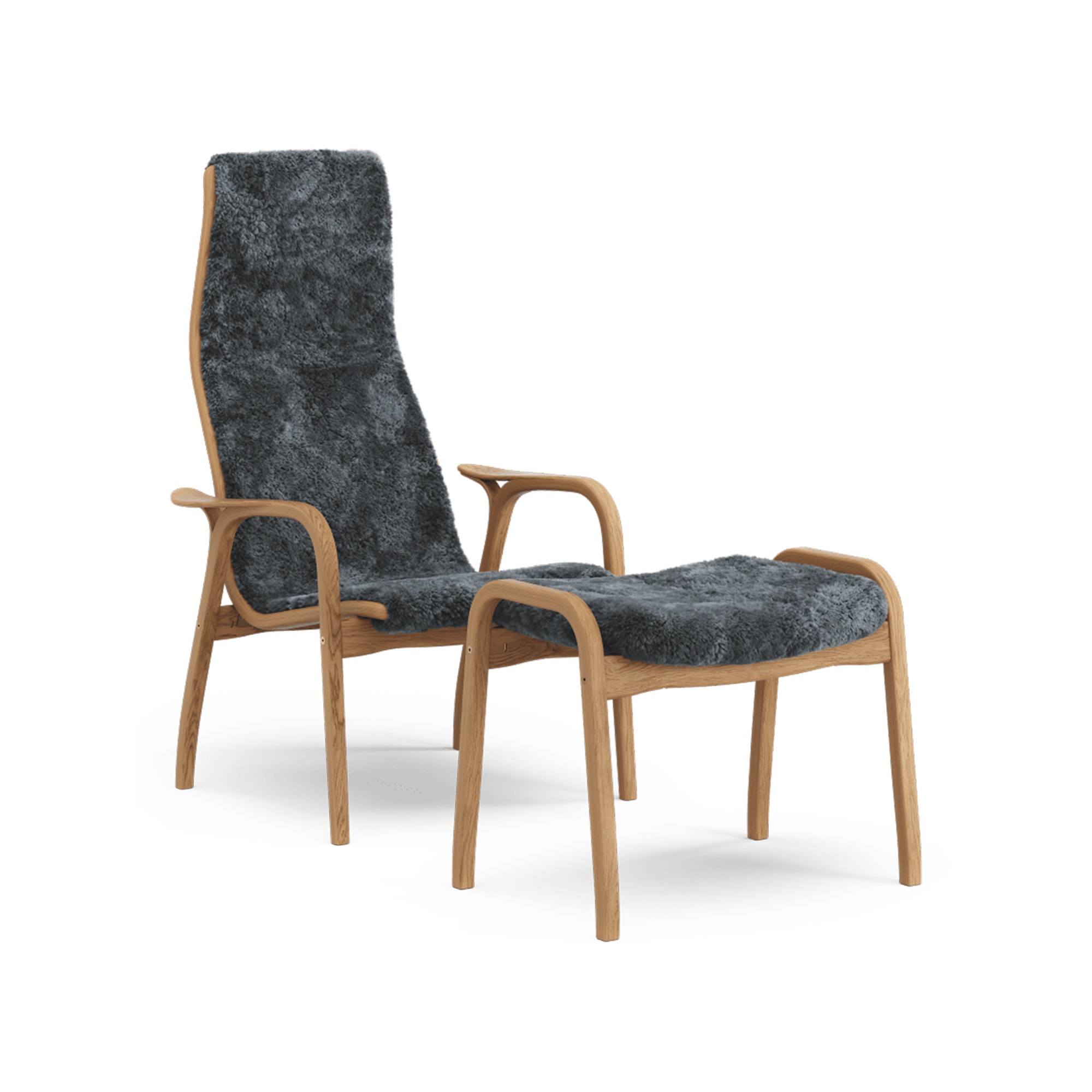 Sillón Lamino Sueco con Reposapiés Alto en Roble Aceitado/carbón/piel de Oveja