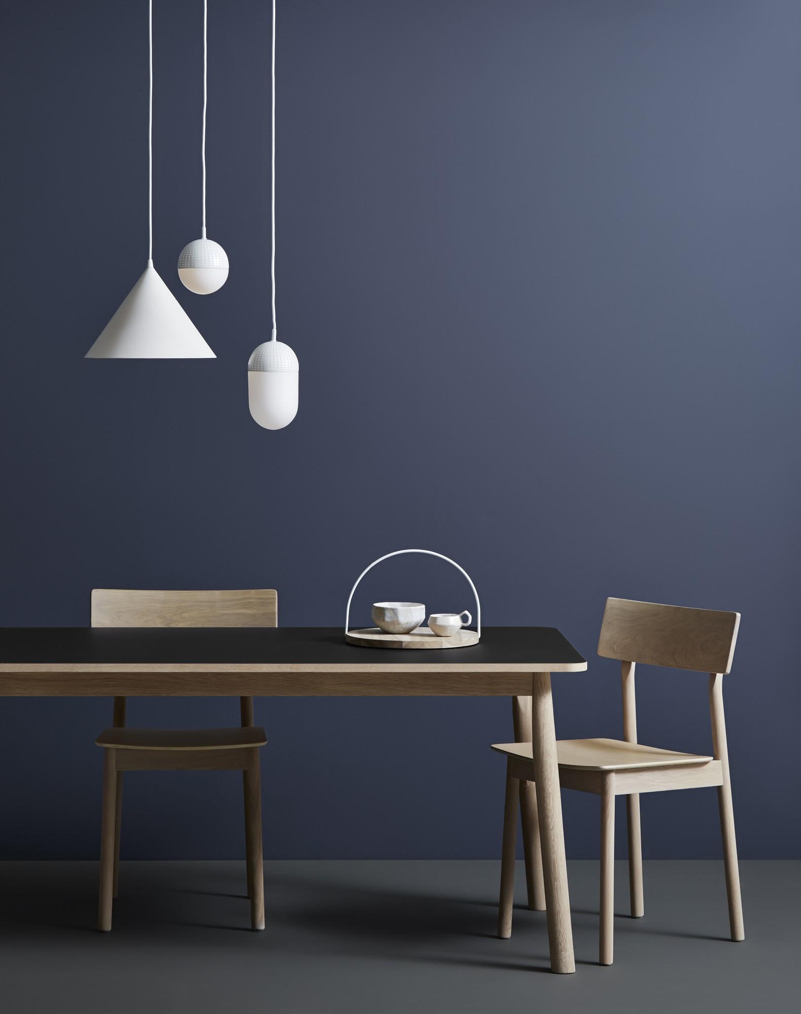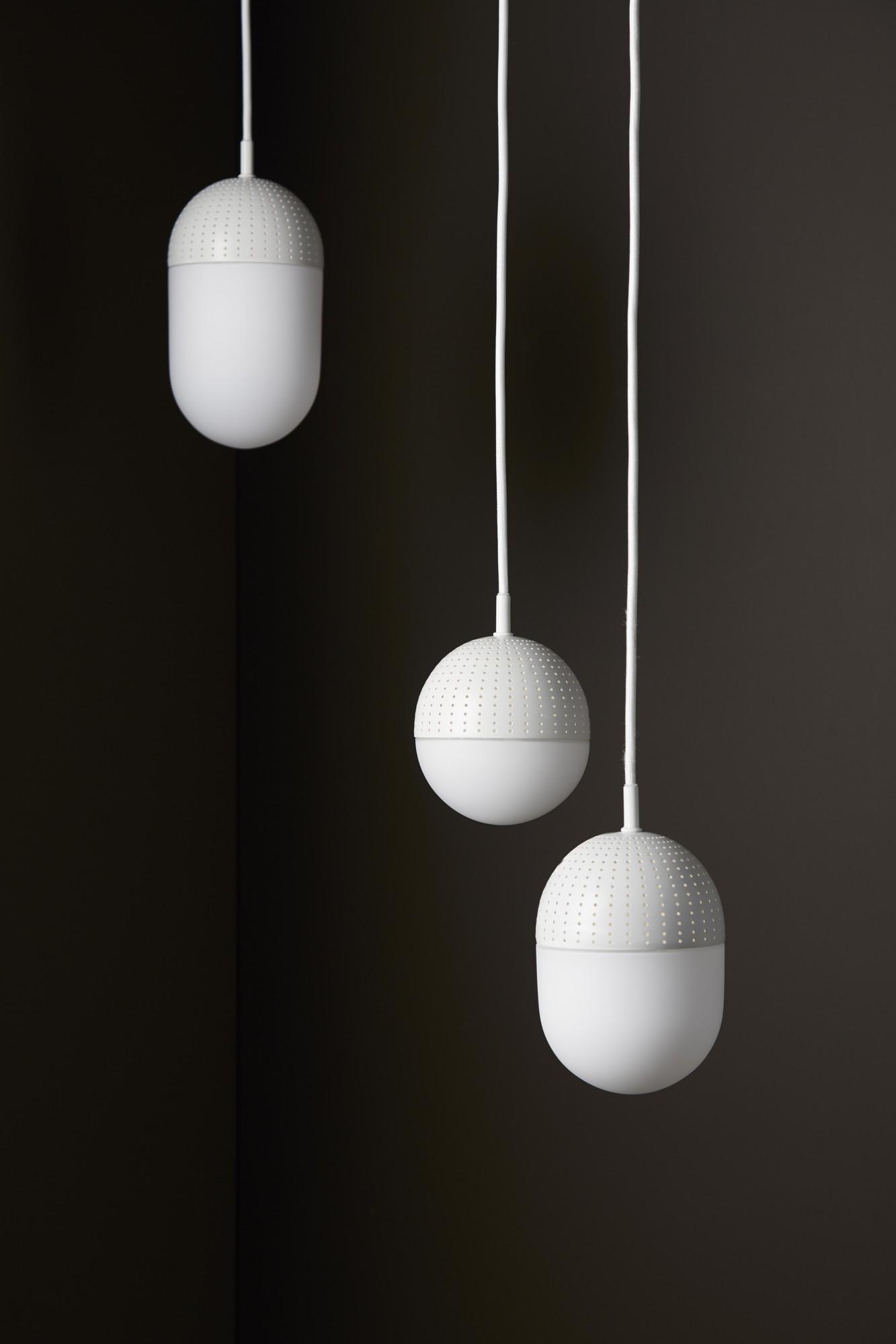 Diseño: Rikke Frost Concepto: Dot está inspirado en el metal perforado y los patrones que crea la luz cuando brilla a través de los pequeños agujeros. El contraste entre el grueso metal perforado y el vidrio opalino liso hace del Dot un lámpara colgante simple y significativo. Con su elegante expresión, Shine, tanto si la luz está encendida como apagada. Dot viene en 3 tamaños diferentes, lo que permite que la lámpara esté sola, pero también explote todo su potencial al combinar la familia en un grupo de lámparas colgantes de diferentes formas, que crean un aspecto escultural en el hogar.